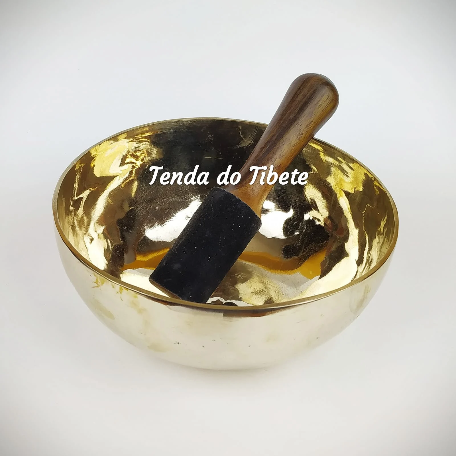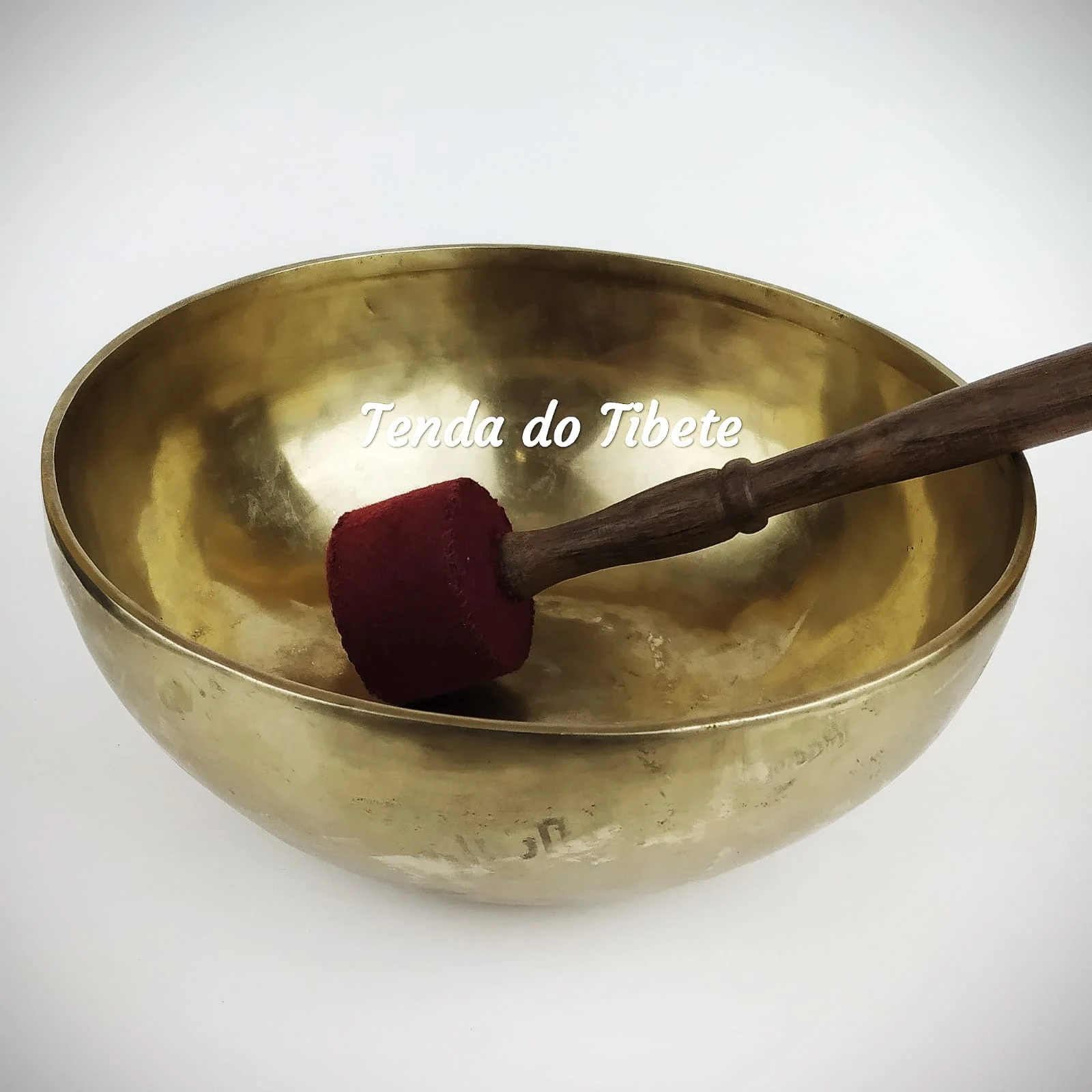 Este modelo de taça tibetana antiga, genuinamente martelada artesanalmente, vibra de uma forma excepcional quando apenas batemos com o batente de madeira revestido.