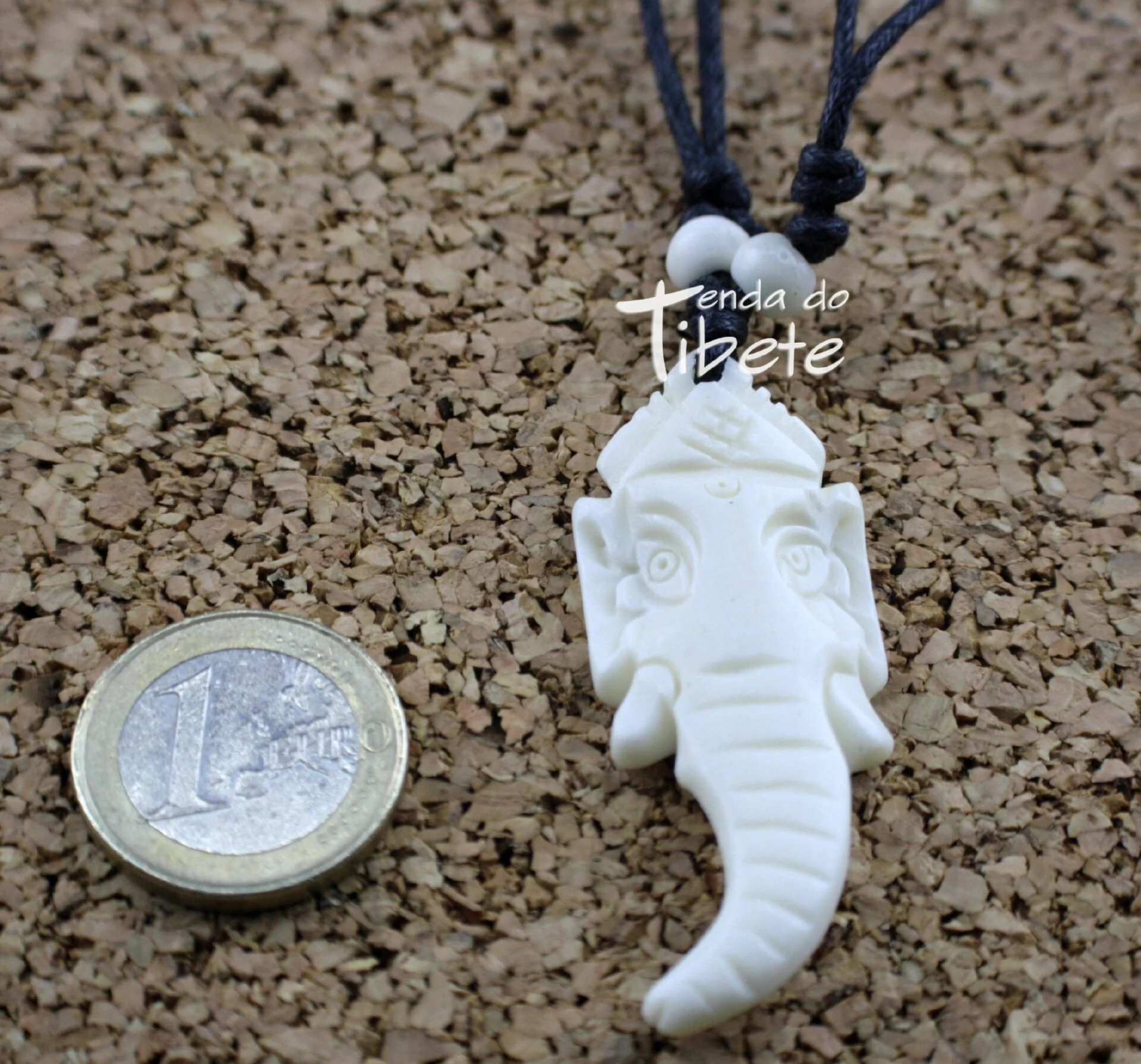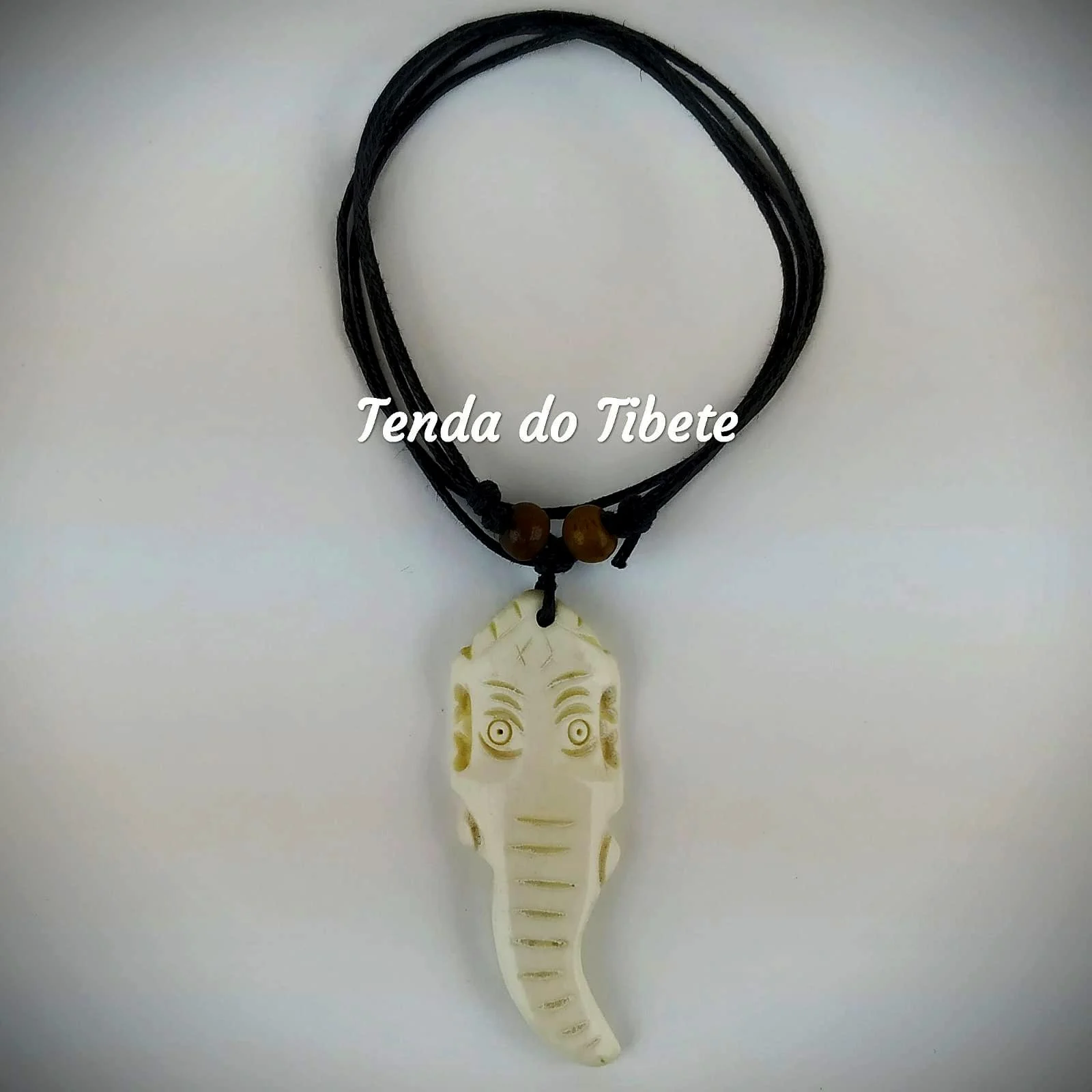 Colar em osso branco de Iaque,com cordão ajustável, imagem de Ganesh