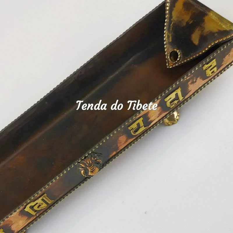 Incensário feito à mão em cobre com o Mantra Om Mani Padme Hum gravado em latão. Peça lindíssima feita à mão no Nepal.