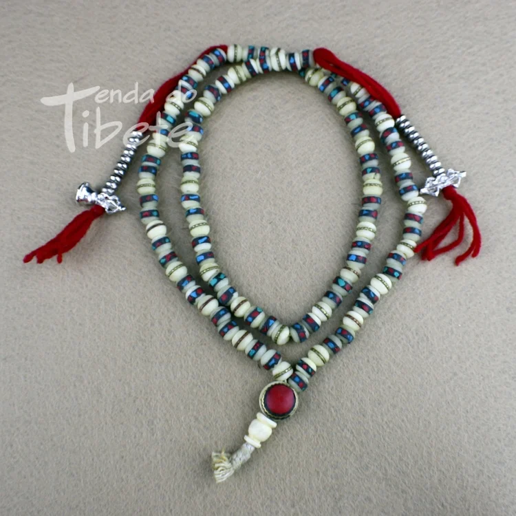 O osso é um material tradicional utilizado em japamalas, tanto o Nepal como no Tibete.
