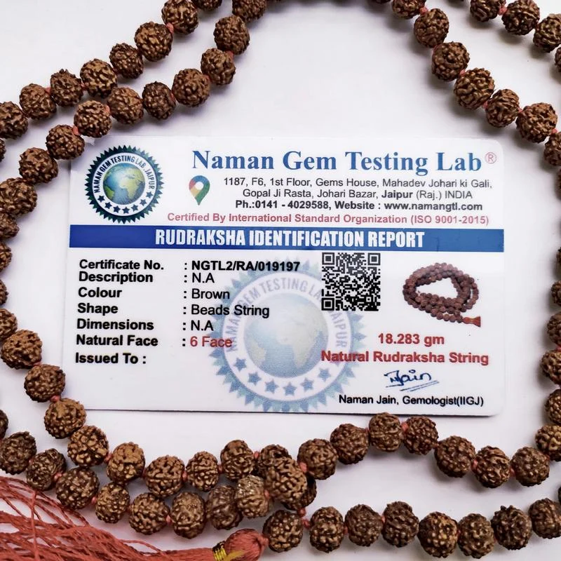 O Japamala em questão possuí seis fendas, isto é, trata-se de um Japamala Rudrksha com seis mukhis.
