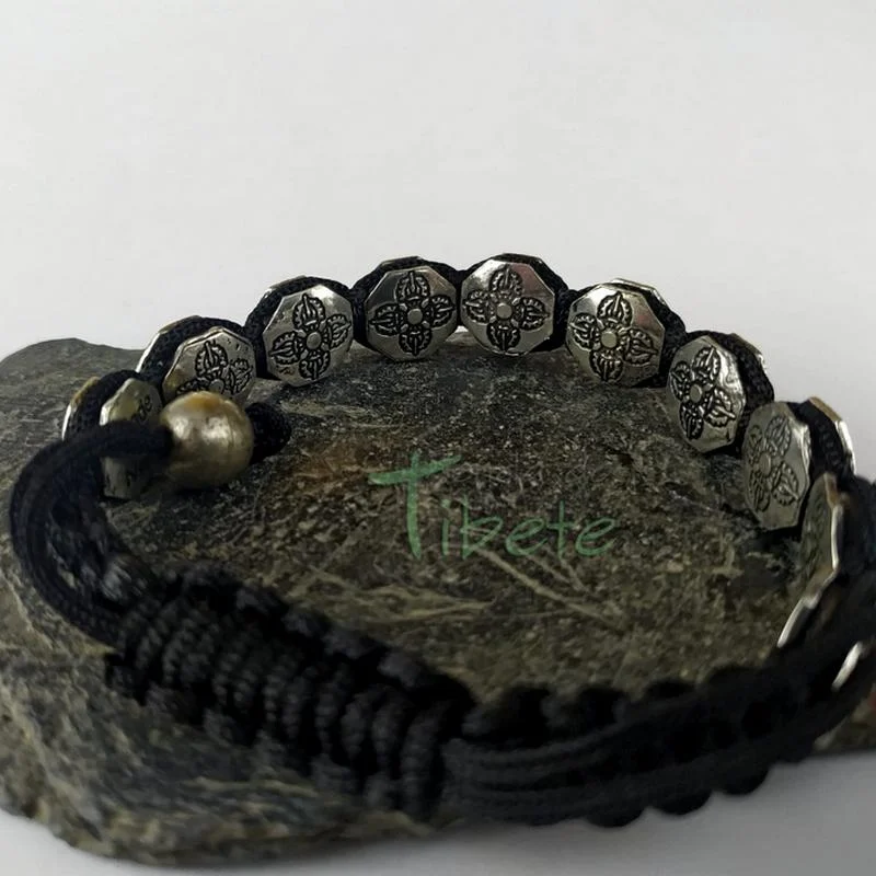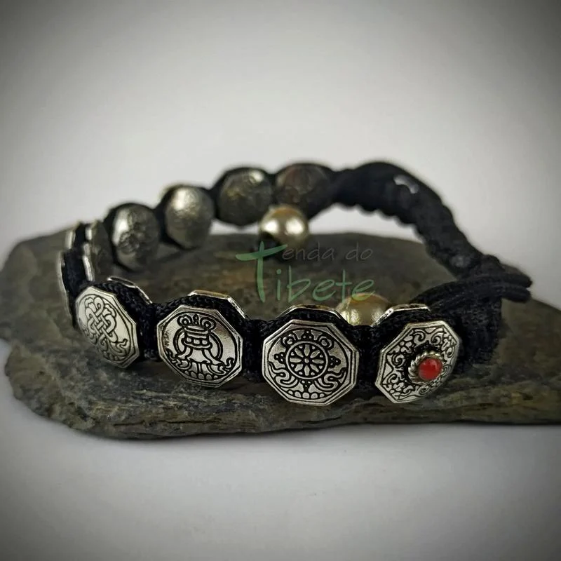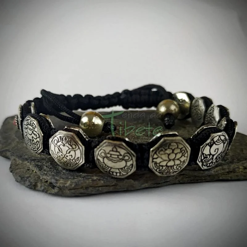 Pulseira ajustável com o lado exterior com os 8 Símbolos Auspiciosos e no interior duplo Dorje.