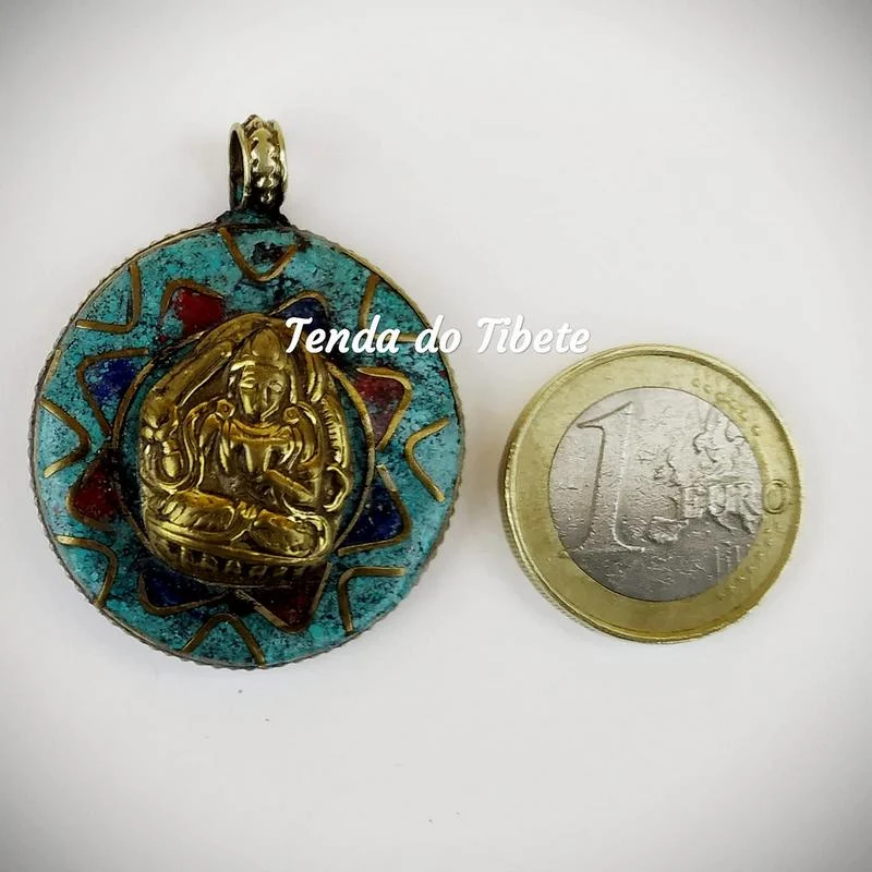 Pendente tibetano Divindade, cores sortidas entre coral turquesa e lapiz lazuli , aprox 3 cm de diâmetro