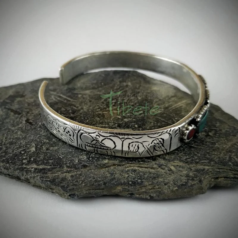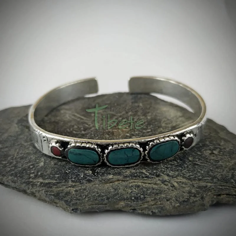 Pulseira ajustável em metal com 3 turquesa encastradas.