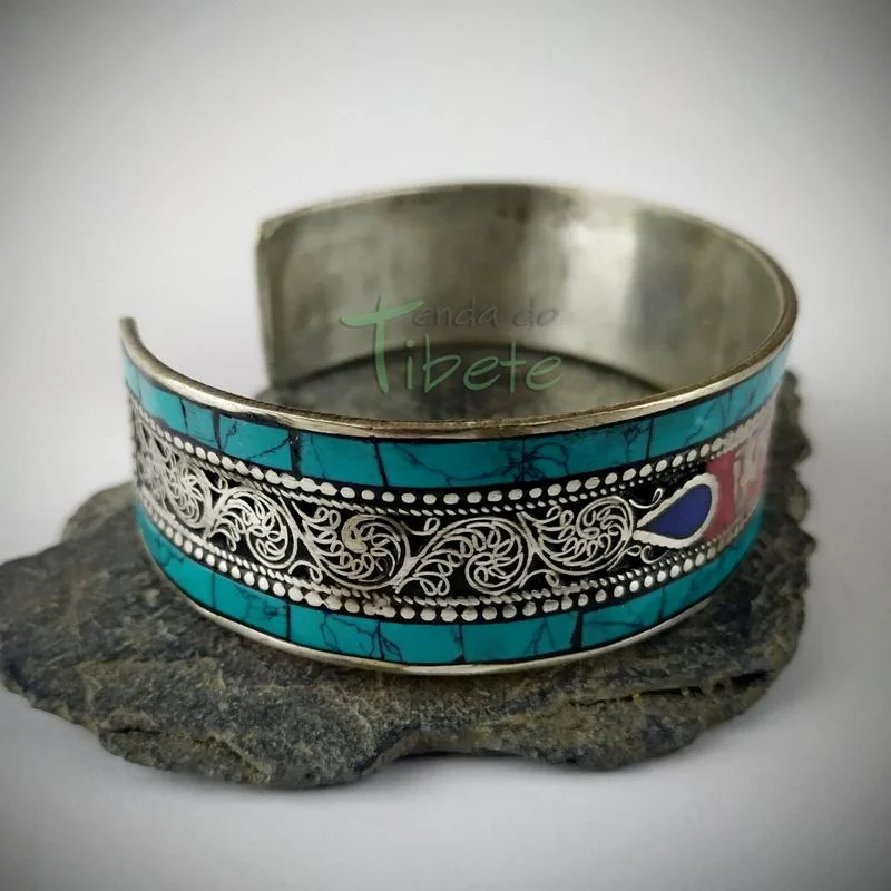 Lindiíssima Pulseira Artesanal Omanipadmehum com pedras encastradas e filigrana.