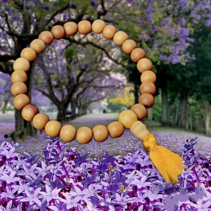 Pulseira Tibetana em Sandalo. Sandalwood é considerado do grupo padma (lótus) e atribuído a Amitabha Buda. Aroma de sândalo é acreditado para transformar seus desejos e manter estado de alerta de uma pessoa ao mesmo tempo em meditação.