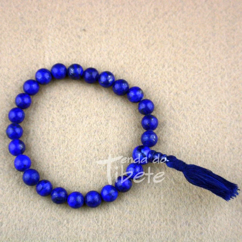 Lapis Lazuli é a pedra que activa a intuição e o chakra da garganta-comunicação e expressão- ativando criatividade, clareza mental e expressão de emoções. A Lapis Lazuli é a pedra da inspiração. Cada conta neste mala de pulso é de 6 a 7 mm de largura. Há aproximadamente 26 a 27 contas nesta mala pulso.