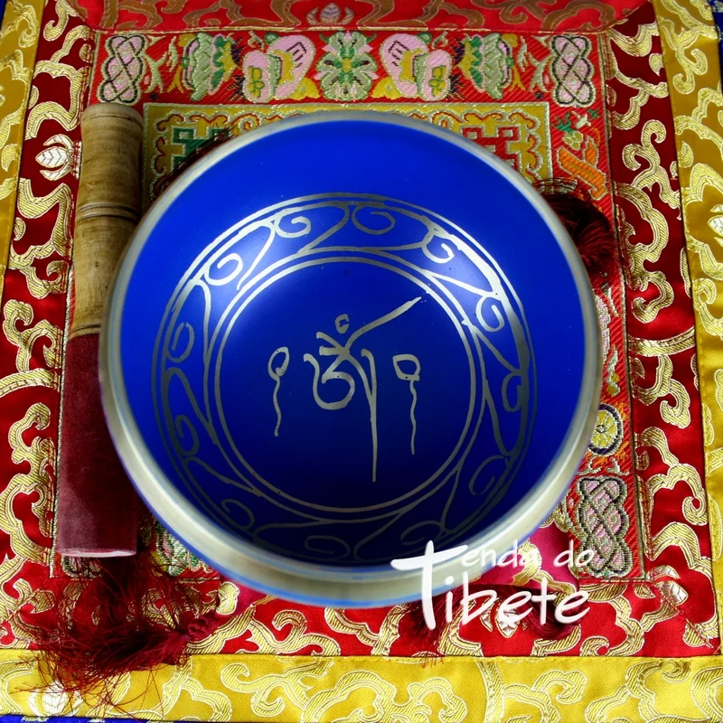 Taça tibetana feita a maquina, Gravado com Om e Omanipadmehum