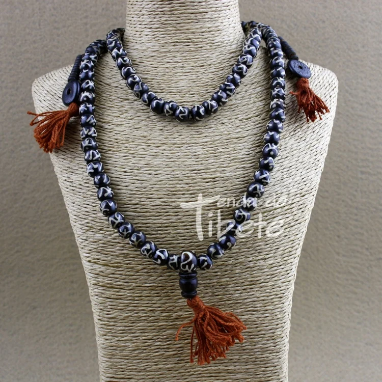 O osso é um material tradicional utilizado em malas, tanto no Nepal como no Tibete. Osso representa a terra e nossa conexão com ela. Osso também é dito para significar a força e para amplificar o prana (energia vital).