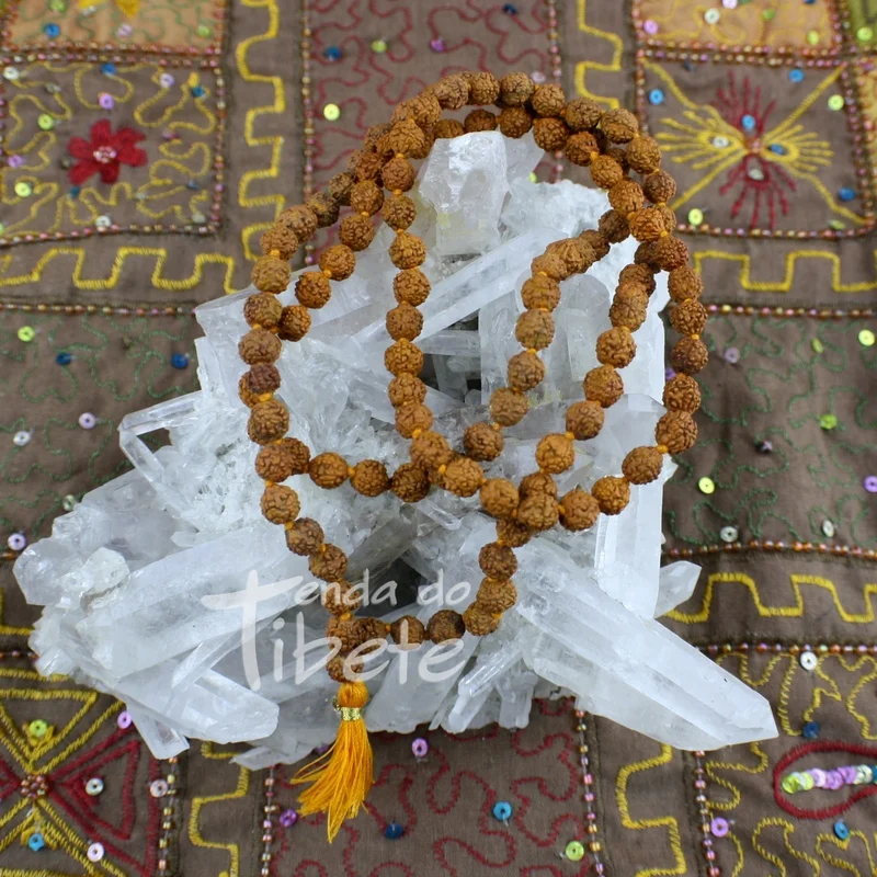 Contas Rudraksha este Terço Tibetano representa Shiva, o símbolo de bons auspícios, e traz ao usuário a paz interior, conhecimento, poder e iluminação. Cada conta de Rudraska tem de diâmetro entre 7/8 m.m.